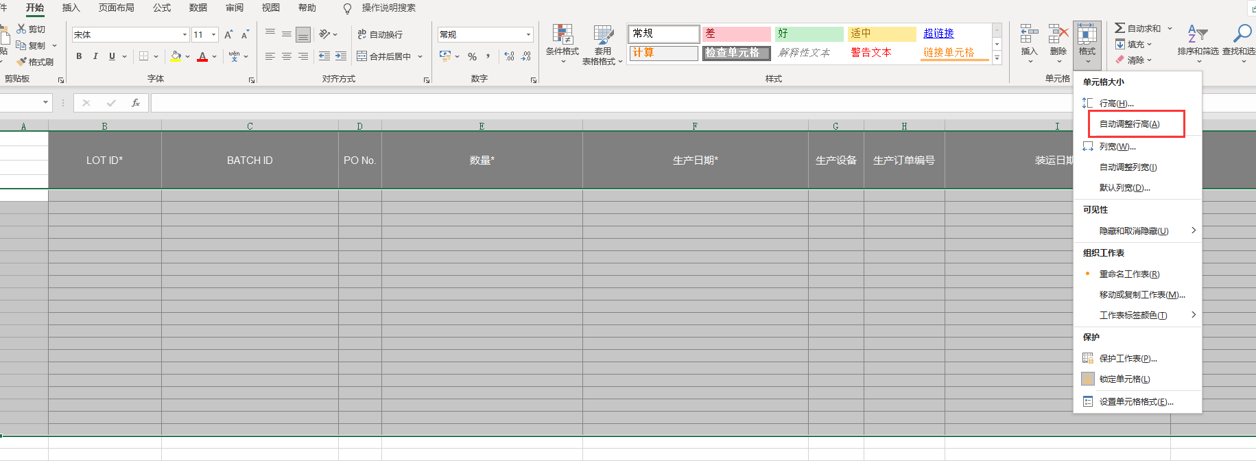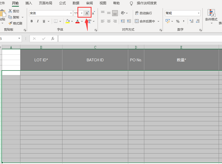 然后把要改变的所有的列选中,点击增大字号如下图: