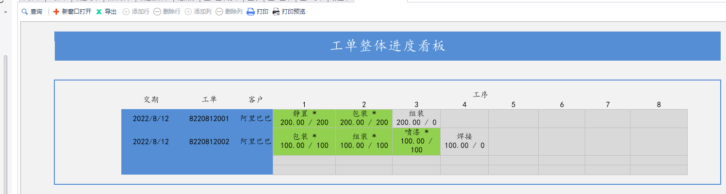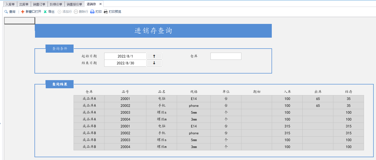 - 场景-前台表和自定义报表标识组合展示出入库情况
