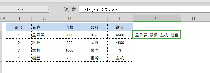 上一页 =NECJoin(单元格区域) 此函数是将区域内的值用逗号连接起来,连接符号默认英文逗号 注意:多个字段区域的时候要用分号隔开 下一页作者:harry 创建时间:2022-03-28 11:55最后编辑:test 更新时间:2025-10-14 15:38