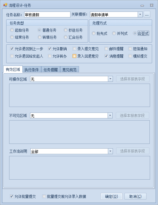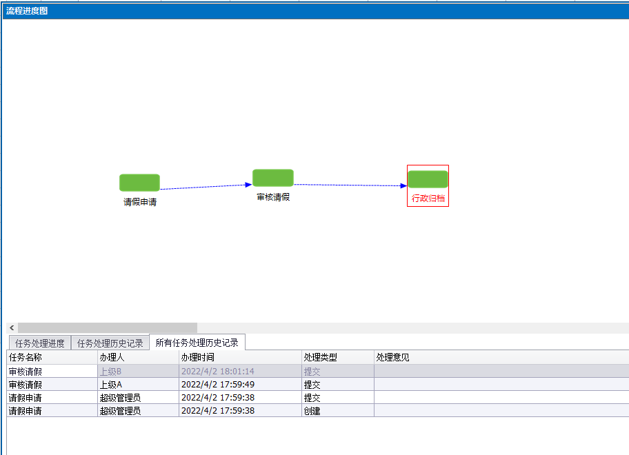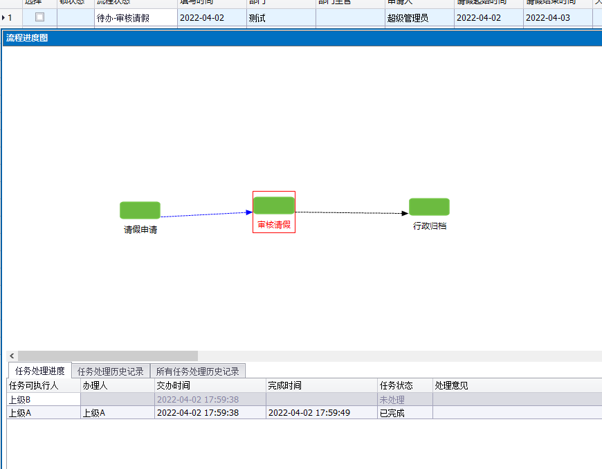 上一页 如果希望能让多人执行本任务,当多人都处理完本任务时才转到下一任务执行人那里,且下一任务执行人只能收到一个任务,这时就要设计会签式 将本案例改成会签式测试 申请人发起流程后,上级A、上级B都收到了待办,上级A先处理,流程还是待办状态 当两人都审核后,才会进入下一步流程 下一页作者:admin 创建时间:2022-04-02 17:45最后编辑:test 更新时间:2025-10-14 15:38