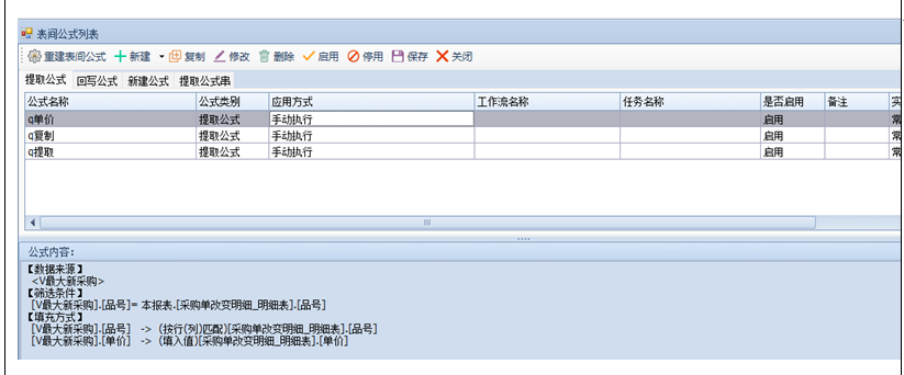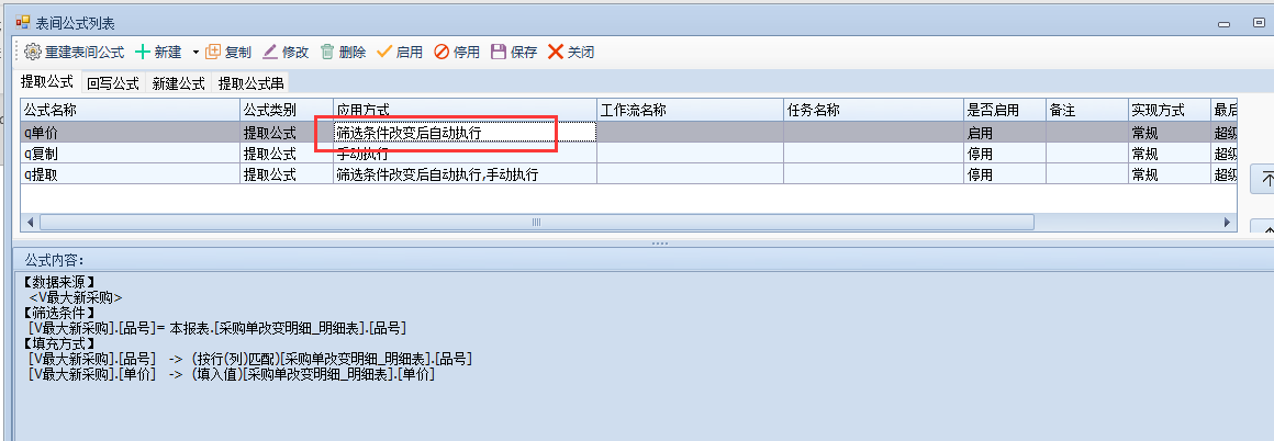 当单元格编辑后(本文指列表选择时),触发表间公式,有历史数据的从视图中选取(q单价),没有历史数据的从临时表中提取(q提取)