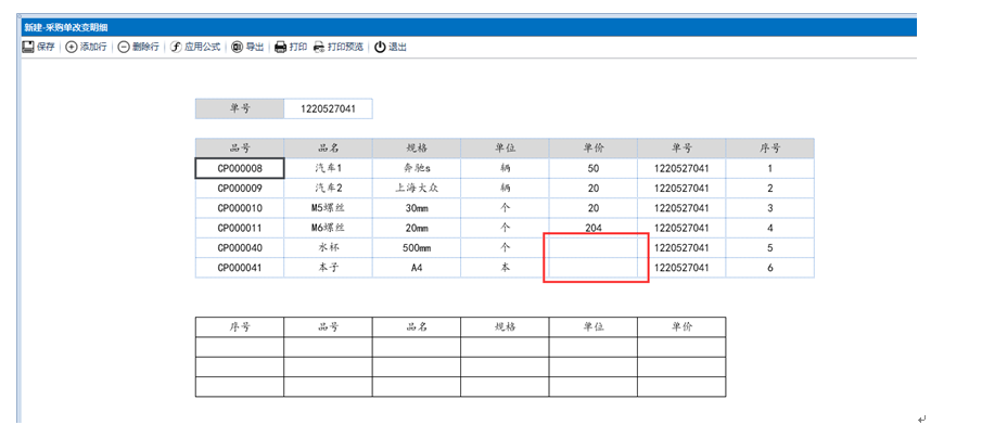 手工填写本子的单价,临时表中会记录此时的单价信息
