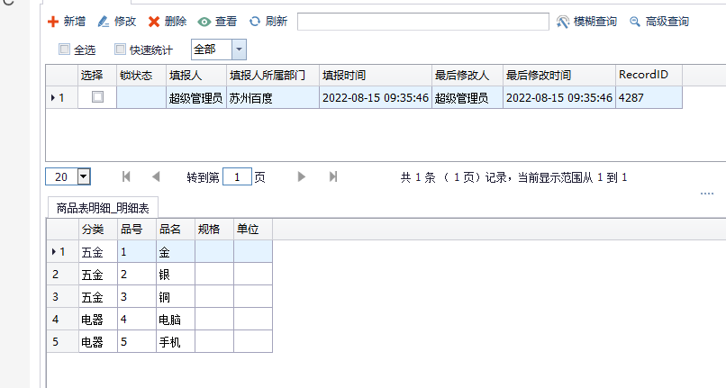以上的场景中分类字段是在主表,当分类字段在明细字段时,并且产品列表的来源字段也是明细表,在当前行选择分类,产品列表会展示与本行对应的产品信息。