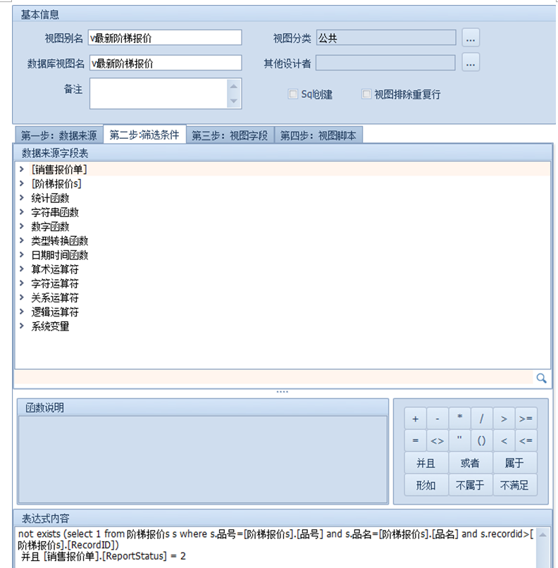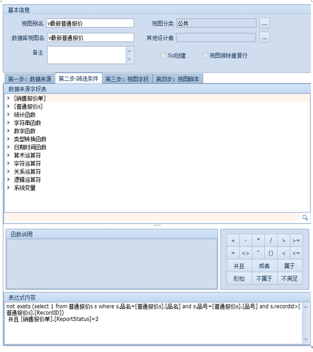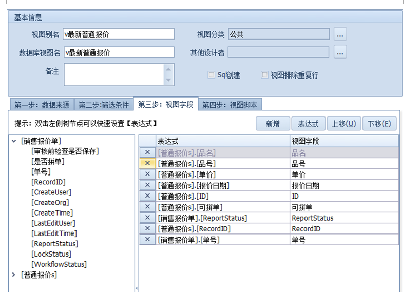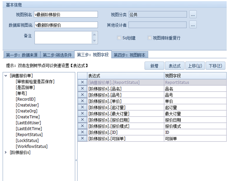 但是报价单会实时发生变化,那么我们需要取最新的报价,但是又需要保留旧的报价,并且需要审核以后才能实施,这里我们需要建立报价视图,如下