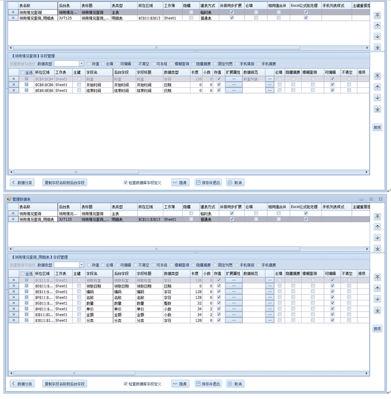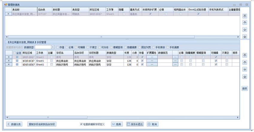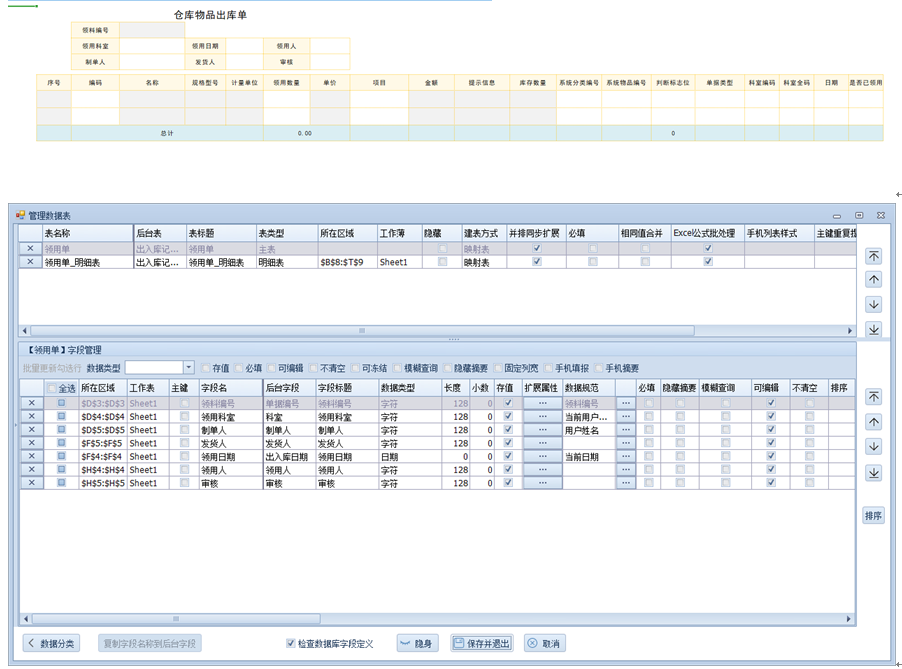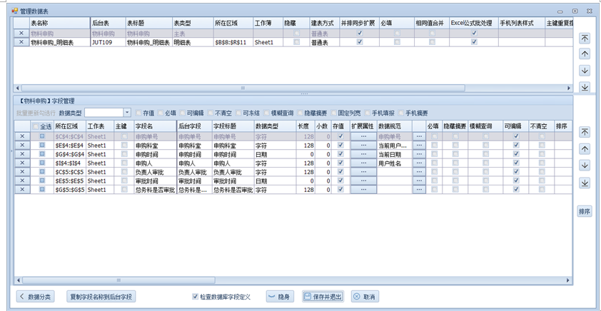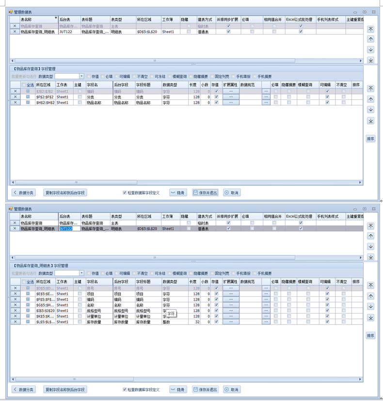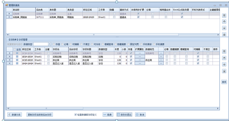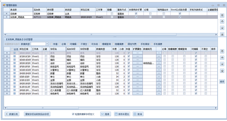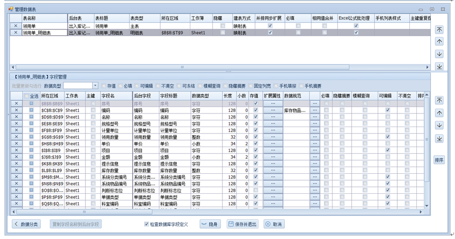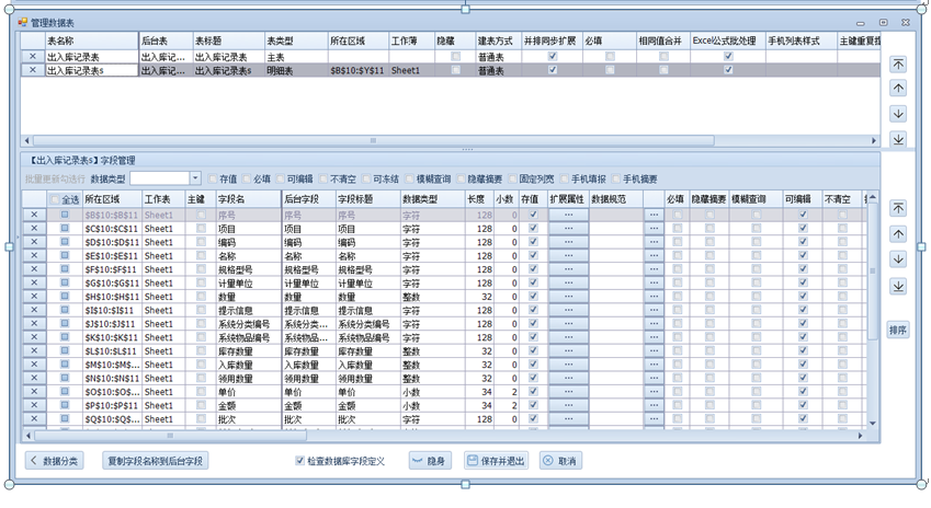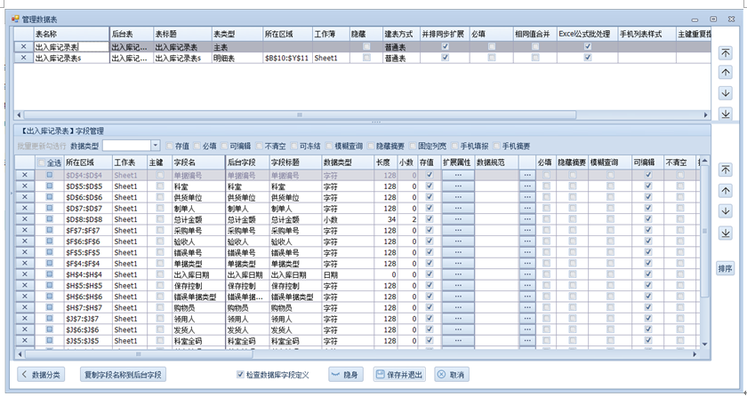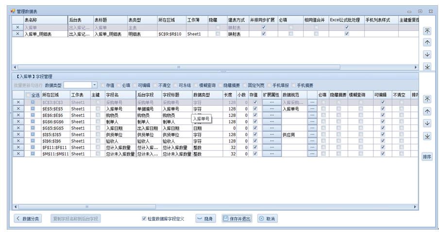 这里建立入库模板为映射表,映射到出入库记录表,方便后续库存计算等操作