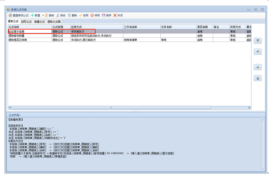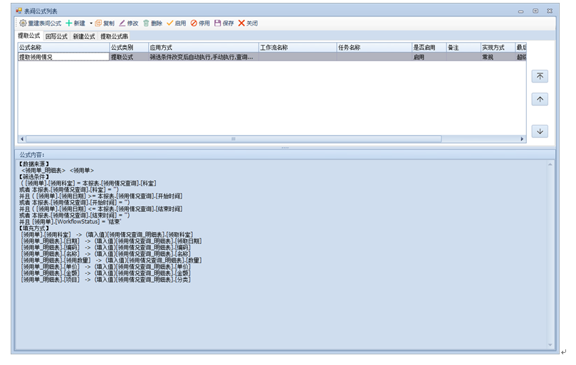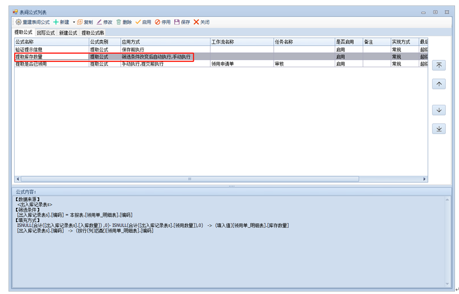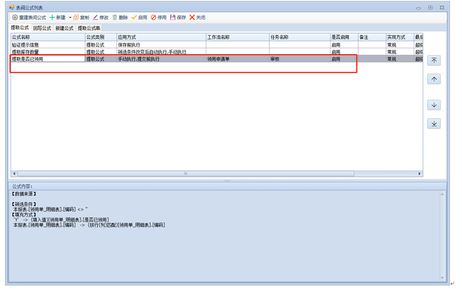 这里公式绑定了流程在流程走到审核同意后确定已领用