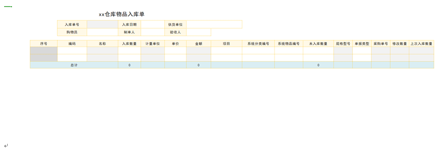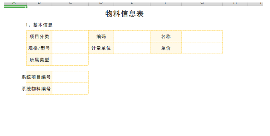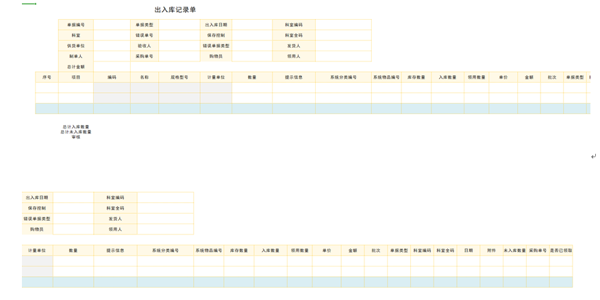 基础信息表模板建立完成后,需要建立一个出入库的模板,用来统计物料出入库的情况以及库存情况,如下: