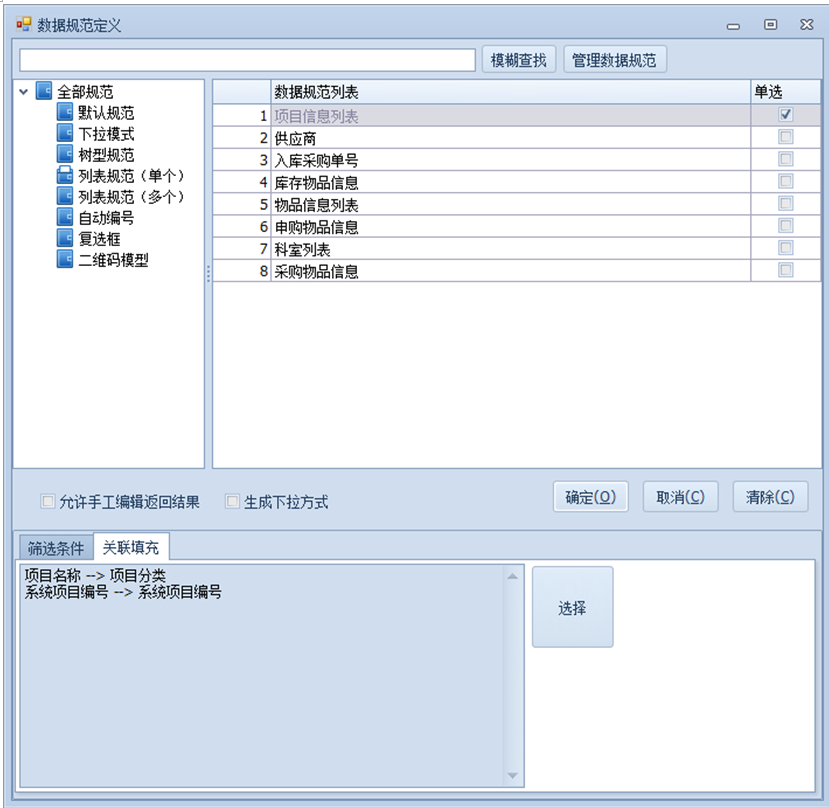 建立基本信息的模板,用来记录物品信息,项目分类信息以及供应商信息