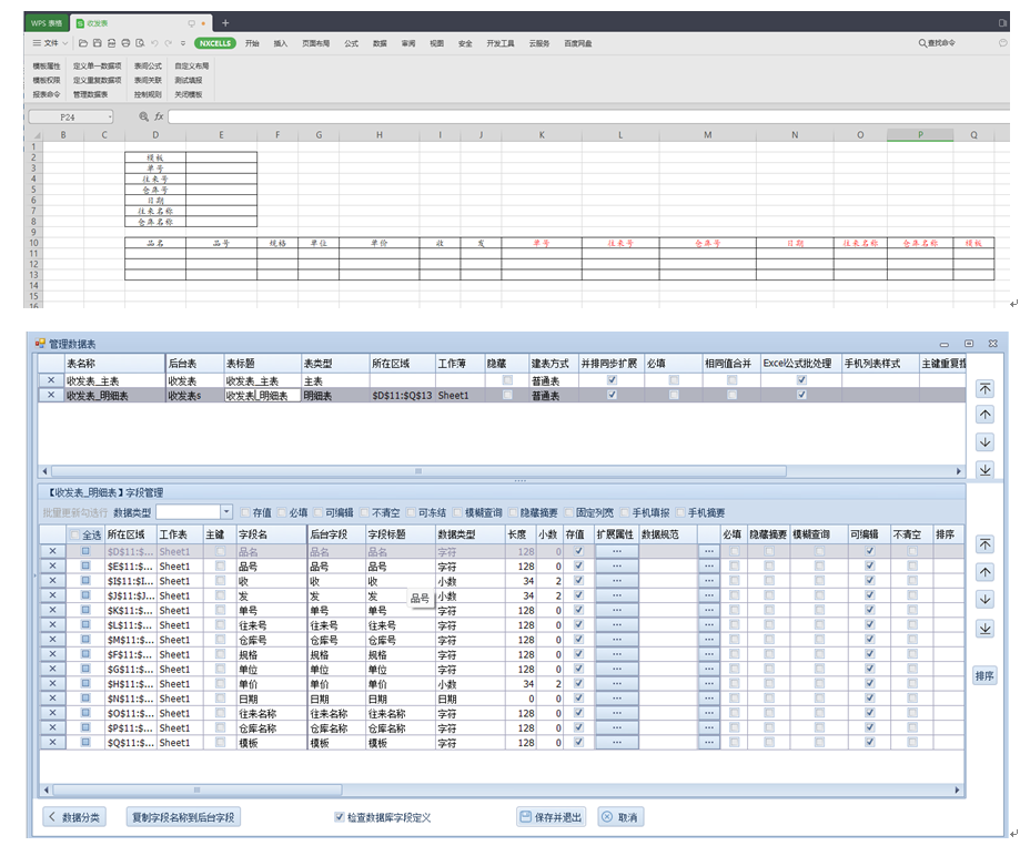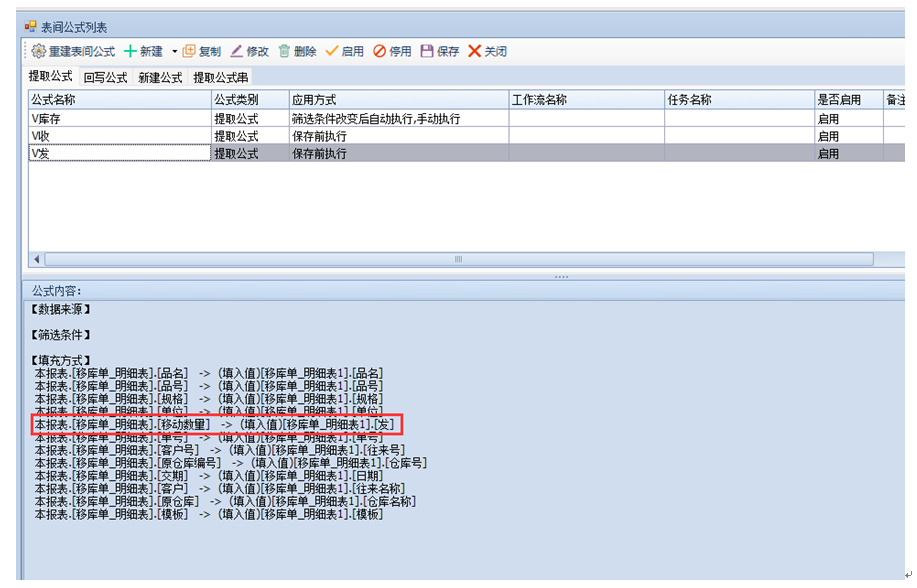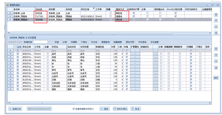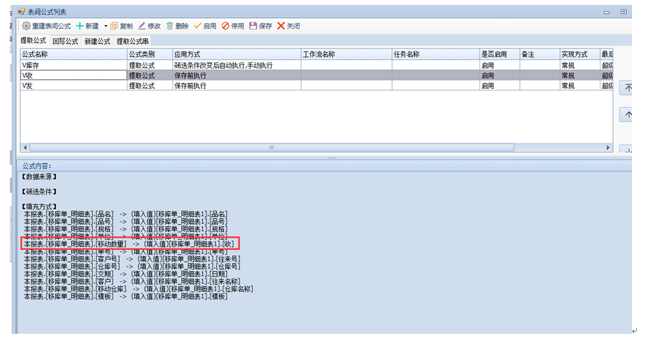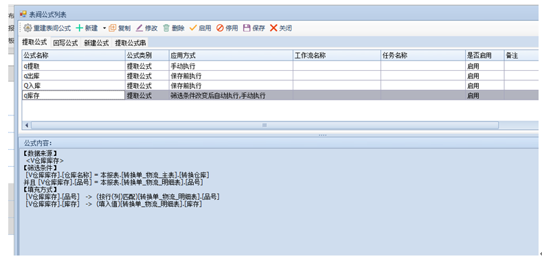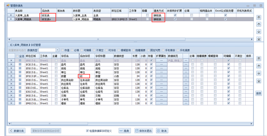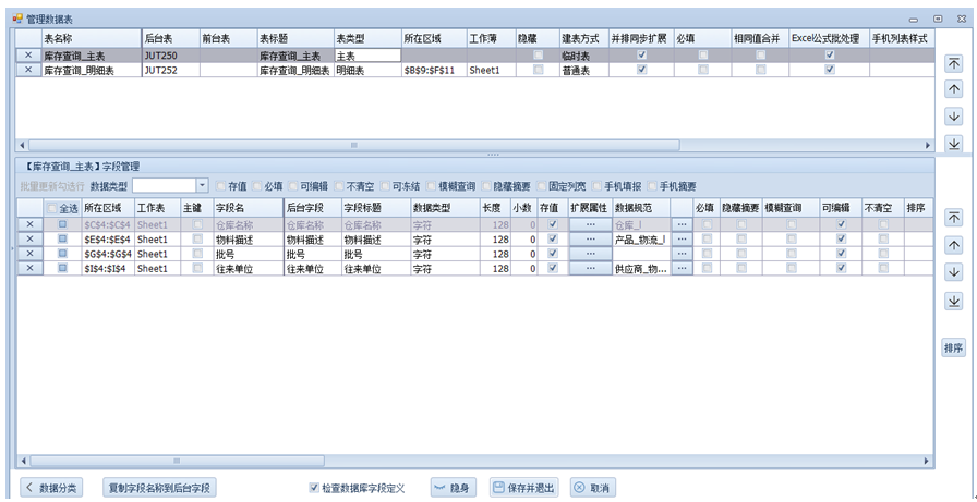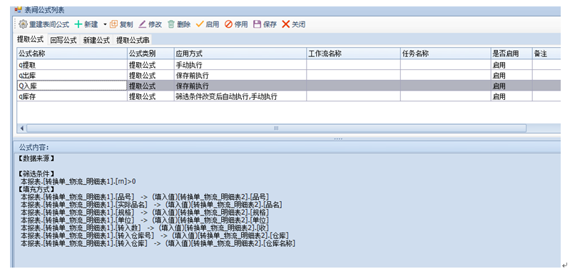 - 场景-前台表和自定义报表标识组合展示出入库情况