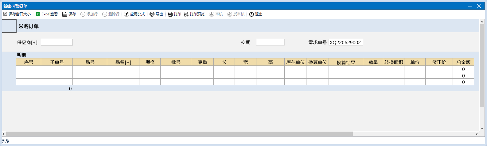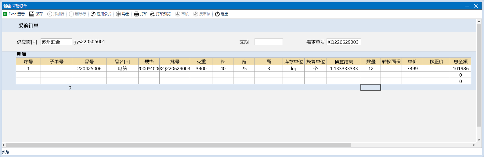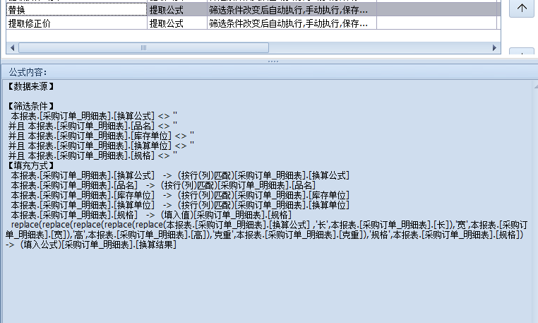 根据品号去匹配计算公式模板中维护的换算公式,将公式提取到采购订单中