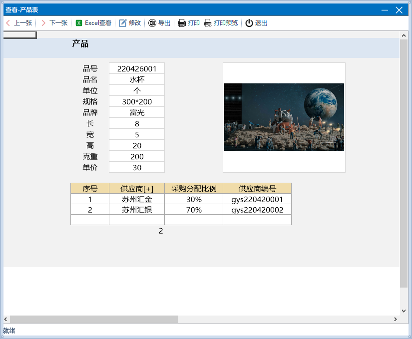 3、选择产品后将长宽高克重自动填充,产品的选择列表来源于产品表