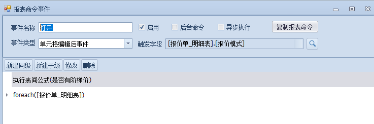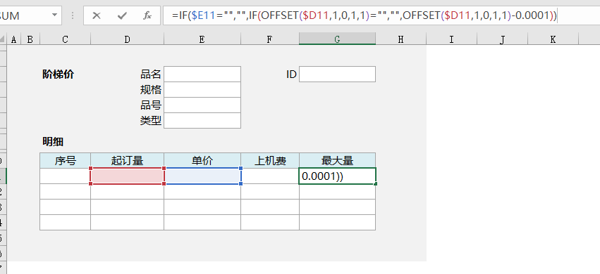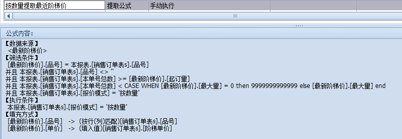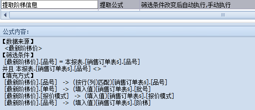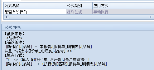 这里还需写提取公式来判断明细表中该产品是否有阶梯价,有就打开,无则新建