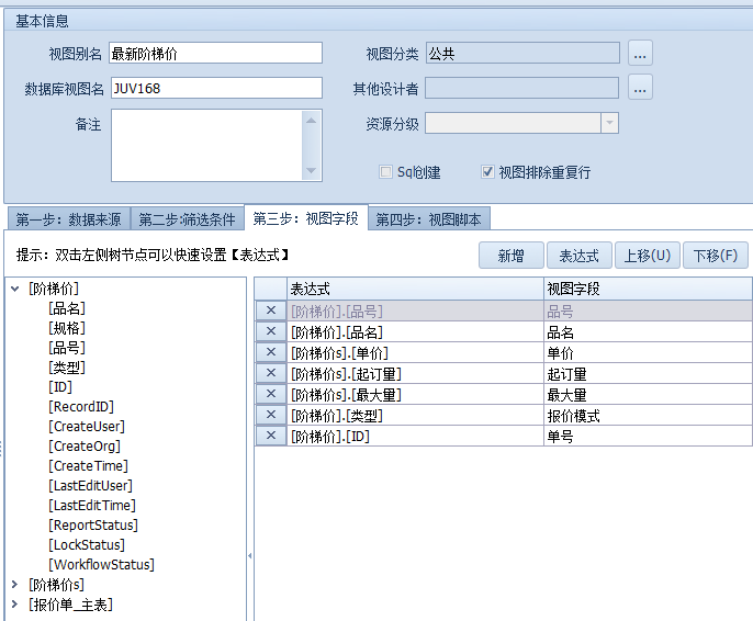 以此类推再做一个最新阶梯价的视图