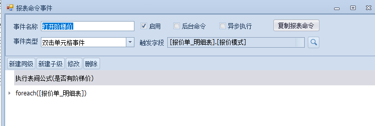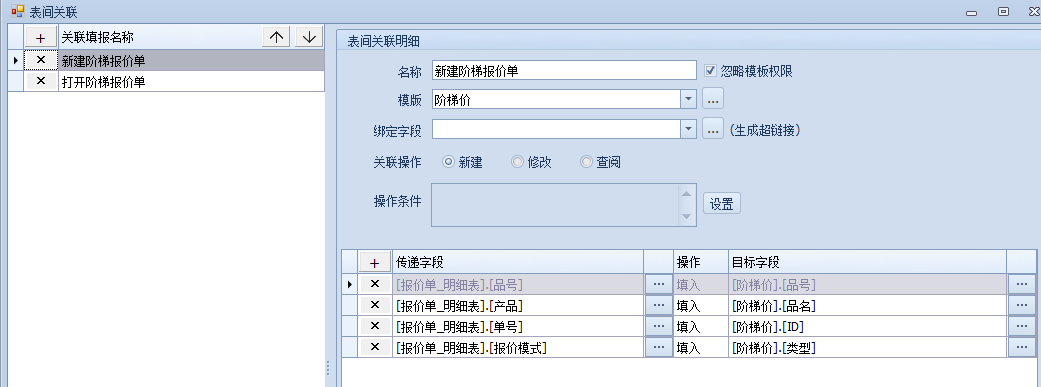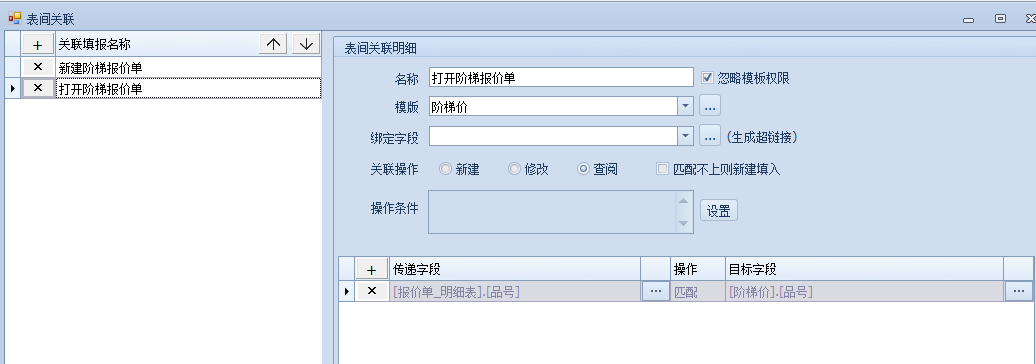 通过报价单可以关联到对应的阶梯价,此时需要做一个表间关联,通过选择或者双击报价模式来打开阶梯价