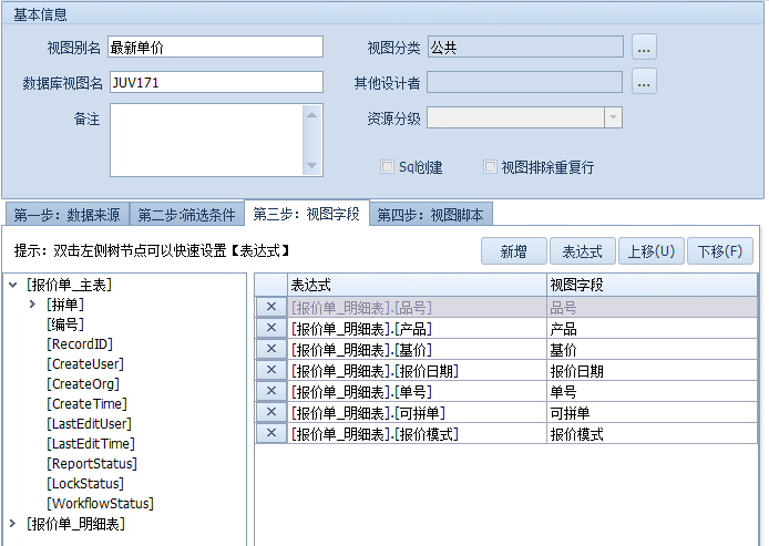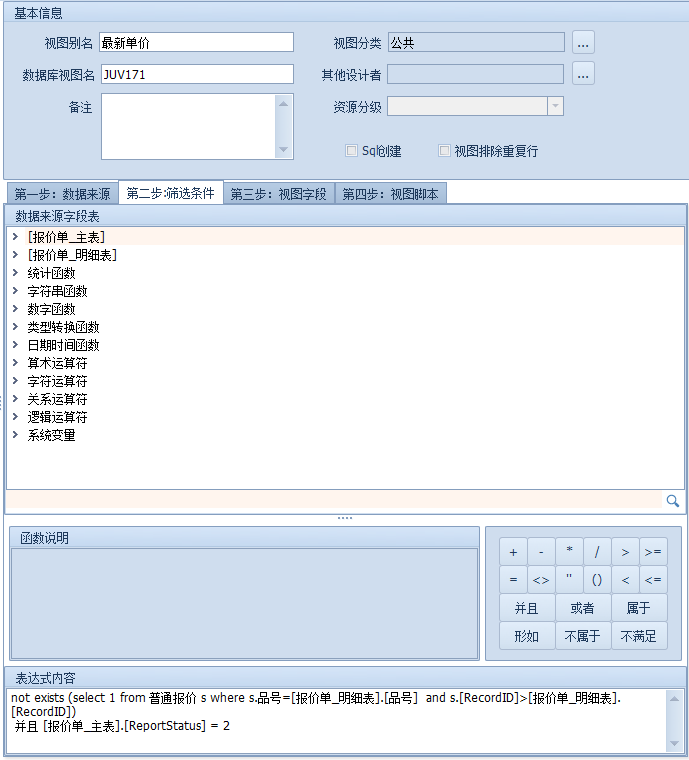 这里表达式的作用是筛选出该品号最新的并且审核的数据,ReportStatus=2代表审核状态