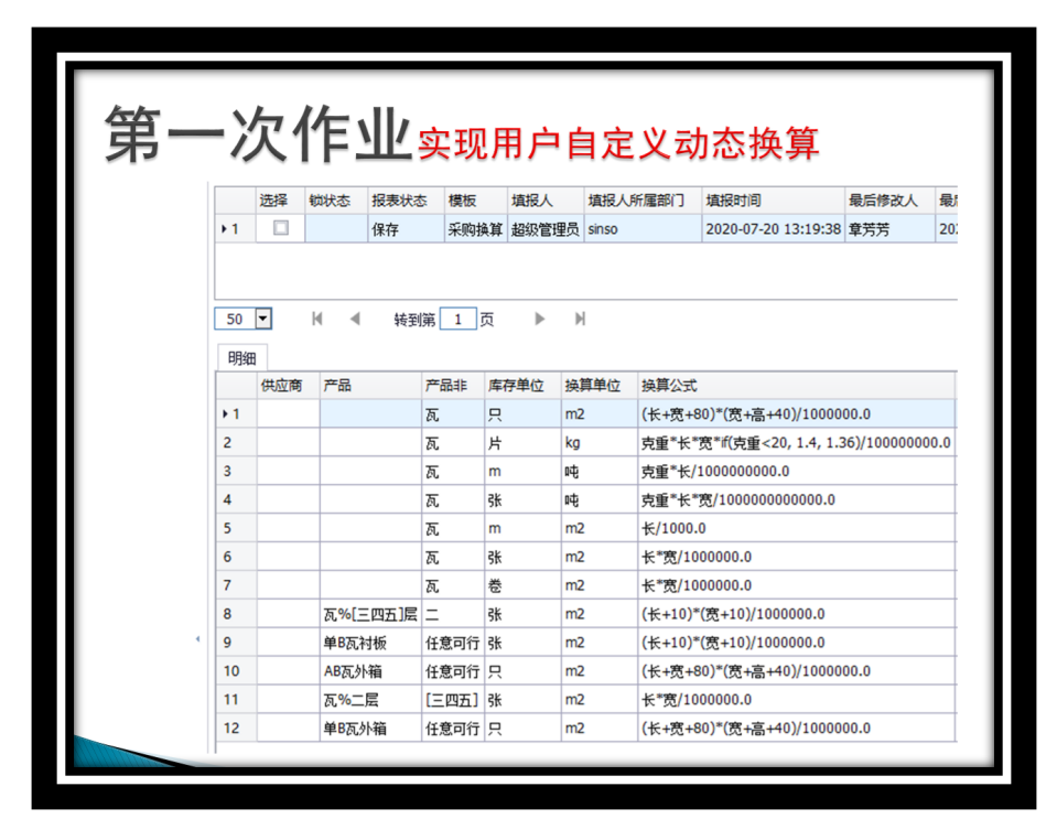 - 场景-前台表和自定义报表标识组合展示出入库情况