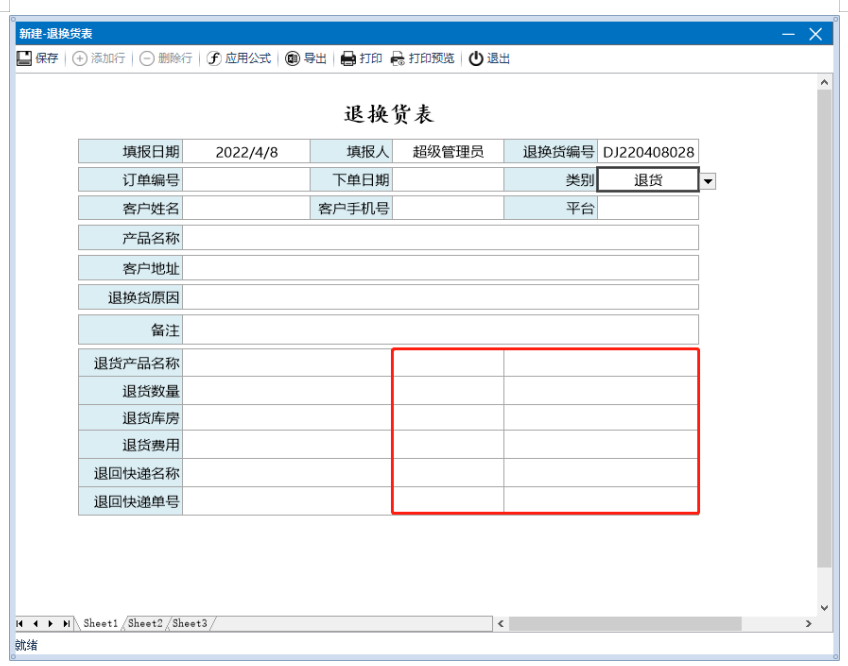 10、退换货表的样式需要根据退/换/补发三种类别做对应的显示