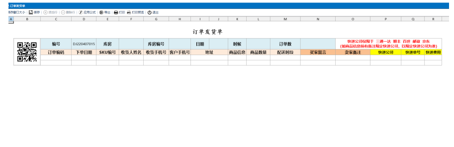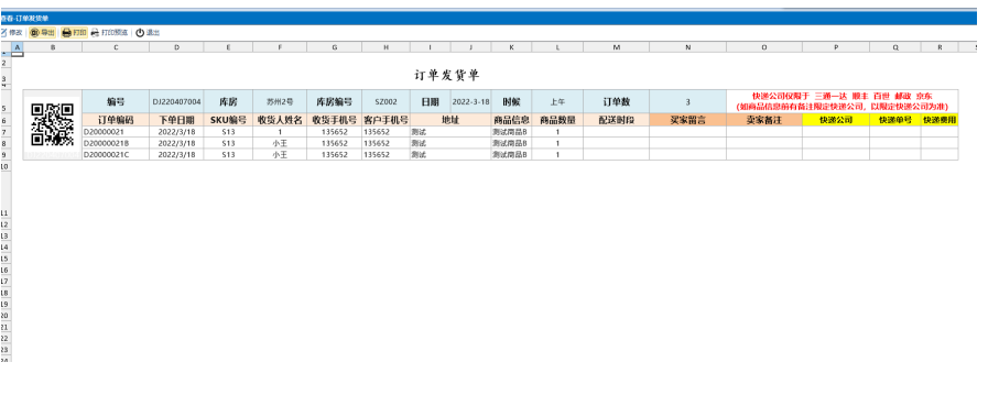 5、由于订单可能会由多个库房发货,所以需要系统将每个库房的订单分配好,库房根据订单上的产品发货,做一个批量分单模板和用于库房发货的订单发货单
