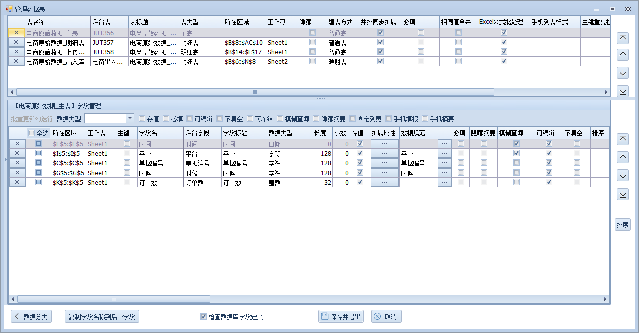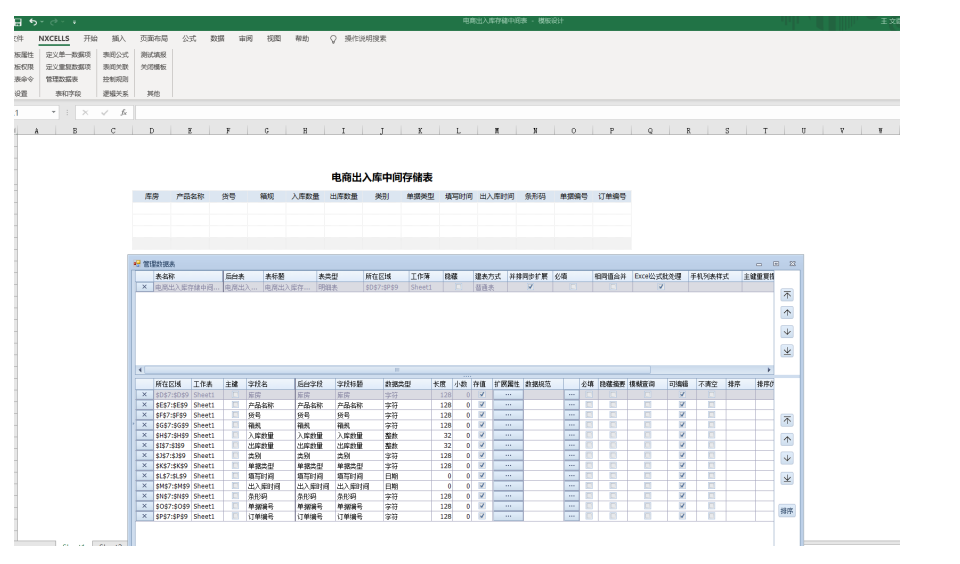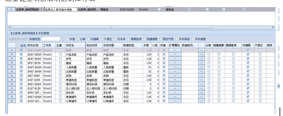 在此模板建立映射表,用于将出库数据映射到出入库中间存储表,方便计算库存