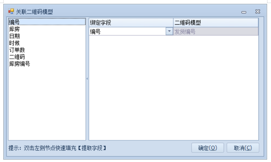 模板中建立二维码字段,并将编号字段绑定在二维码上,编号是自动编号,这里不再赘述自动编号做法