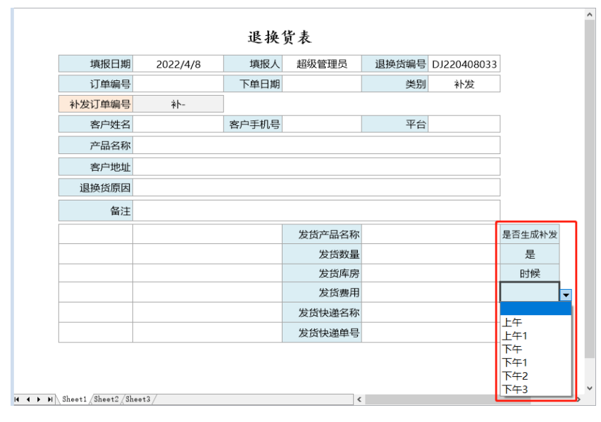 当类别为退货:用excel条件格式将红框中发货部分隐藏掉,只需填写退货信息