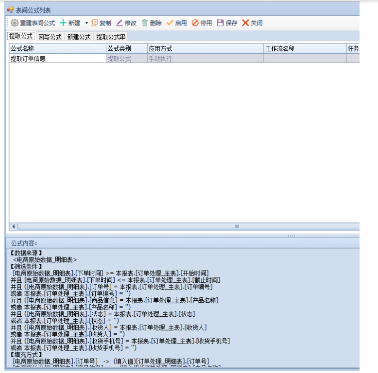 订单发货单中做提取公式用于根据批量分单新建过来的数据来提取订单中的数据