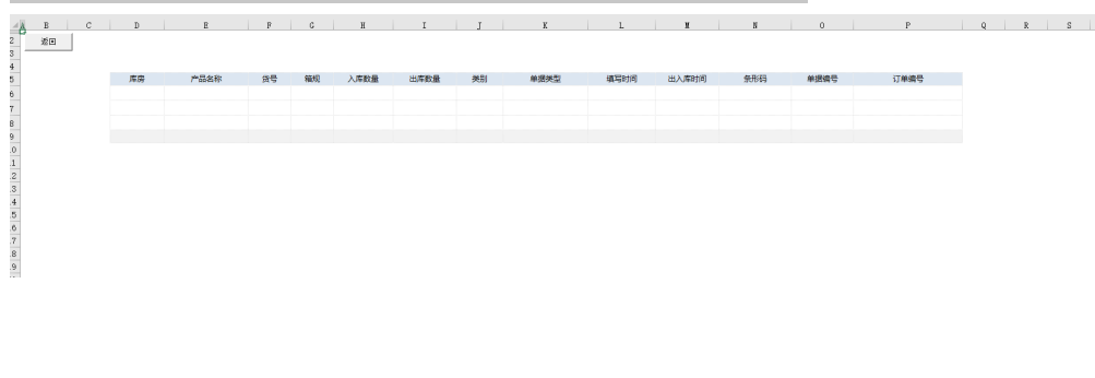 查询出库房为“苏州库房”的所有数据,这时我们想通过点击产品名称查询对应产品的出入库记录,此时可以在Sheet2工作表做一个出入库记录的模板,如下