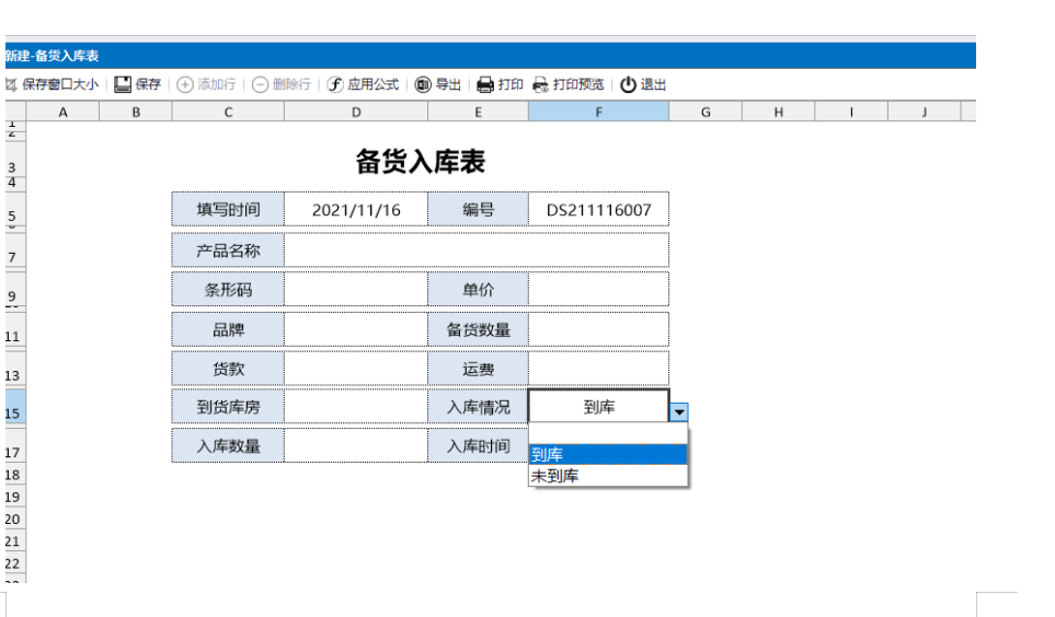 备货入库表同样也需要映射到出入库中间表 入库情况这里设置了一个下拉选项 通过选择是否到库来决定是否入到库存中去,因为有货物在途还没到仓库,先把备货信息填好的情况备货入库表同样也需要映射到出入库中间表 入库情况这里设置了一个下拉选项 通过选择是否到库来决定是否入到库存中去,因为有货物在途还没到仓库,先把备货信息填好的情况