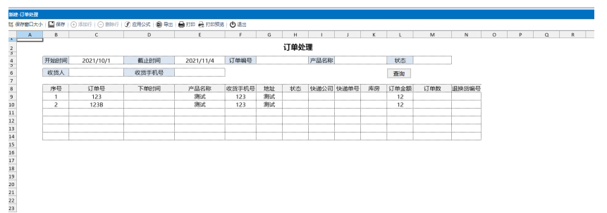 8、下面可以做一个订单处理模板,用于更改订单信息,做带有筛选的查询,方便查询订单