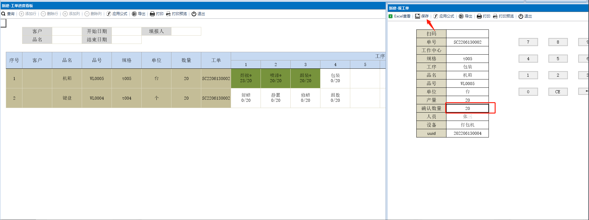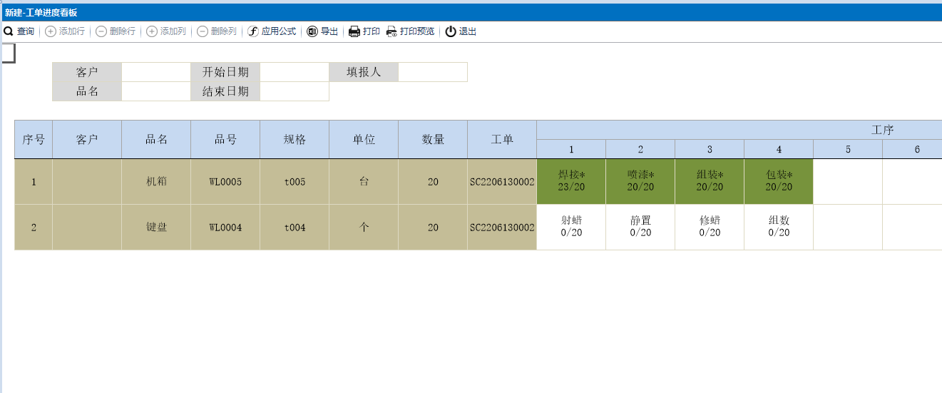 - 场景 -交叉表生产报工界面排序