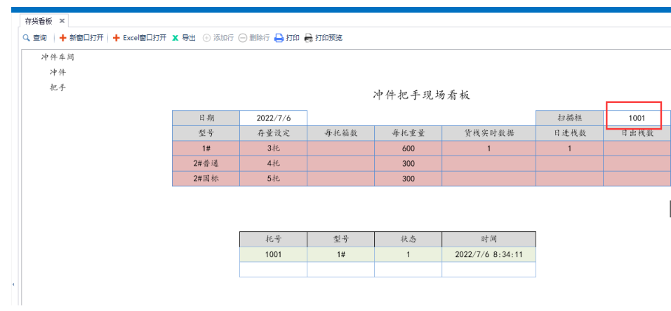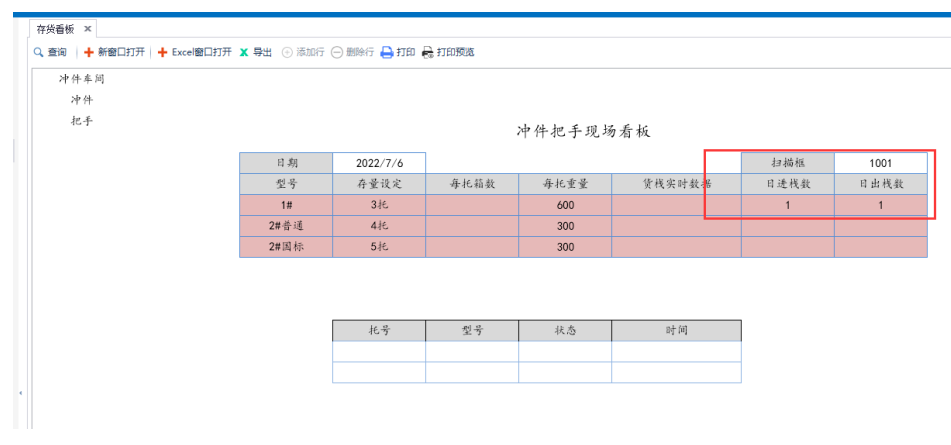 - 场景-前台表和自定义报表标识组合展示出入库情况