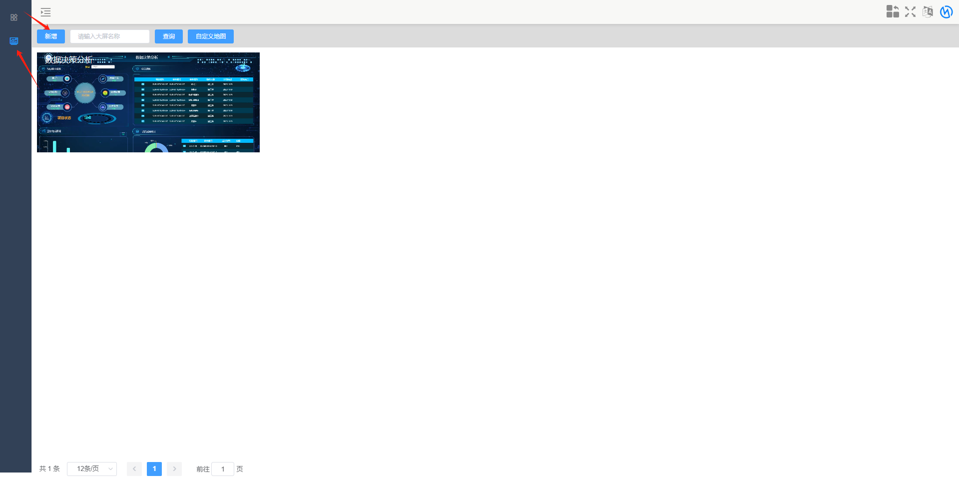 2.点击决策分析进入大屏设计,点击新增