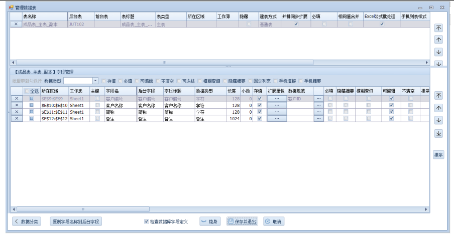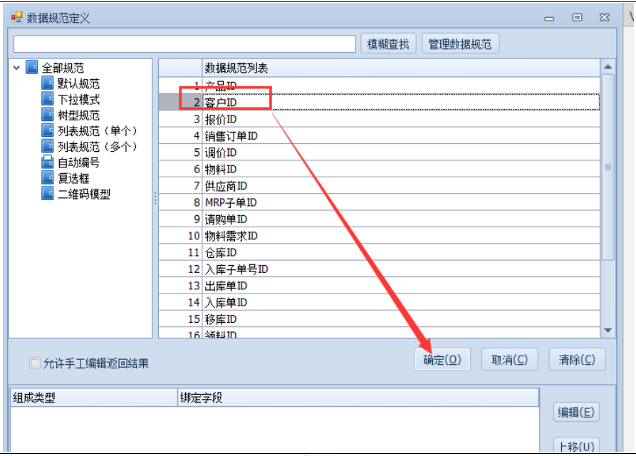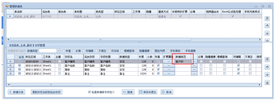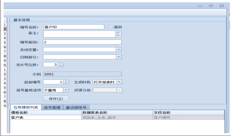 我们可以发现【管理数据表】中,客户编号绑定了这个自动编号规范