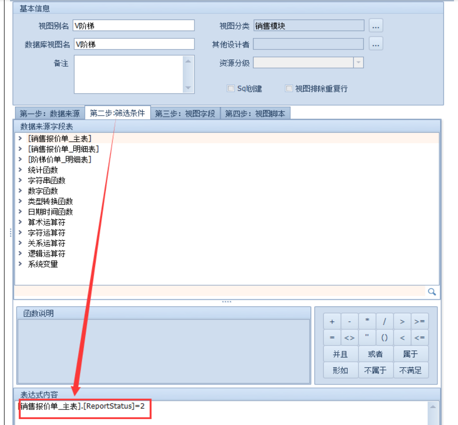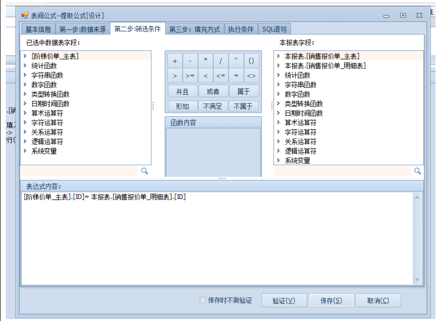 筛选条件使用销售报价单中的ID去匹配阶梯价单中的ID