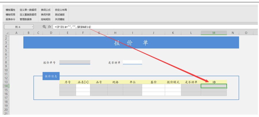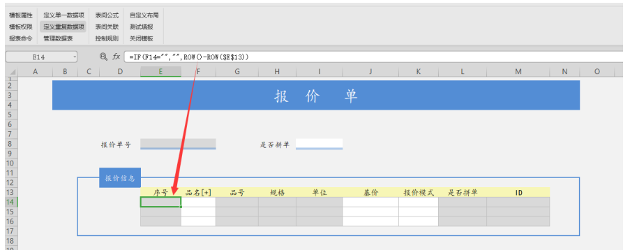 明细行的ID使用报价单号和序号的拼接,给每行一个唯一的ID号,这个ID号用于后面的阶梯价单号,这个拼接只是展示使用,因为拼接过后的ID号长度可能不一样,这样显得不专业;我们可以用ID号和品号拼接,也可以重新给个自动编号,生成时机是保存报表时;