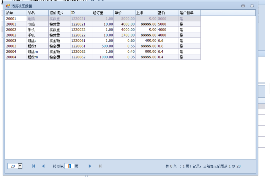 明细表中,【起订量】是阶梯报价的一个阶段起始,【上限】是阶梯报价的一个阶段结束,