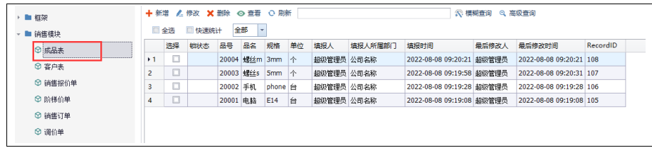 类似于客户表,成品表的品号是自动编号,绑定的是产品ID