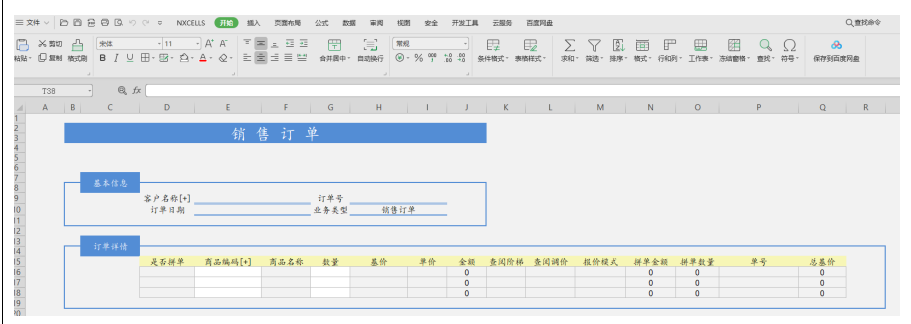 查看明细表,商品编码绑定成品列表,数据下沉可以使用excel公式,也可以使用管理数据表中的【为空取值】,保存时会将订单号下沉到【单号】字段