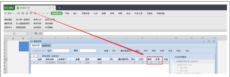 将销售报价单的模板权限中的审核和反审两个勾选上,查阅权限中的也需要勾选。