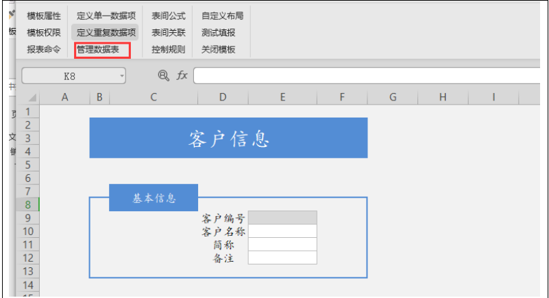 点击【管理数据表】,我们可以发现日期绑定的当前日期