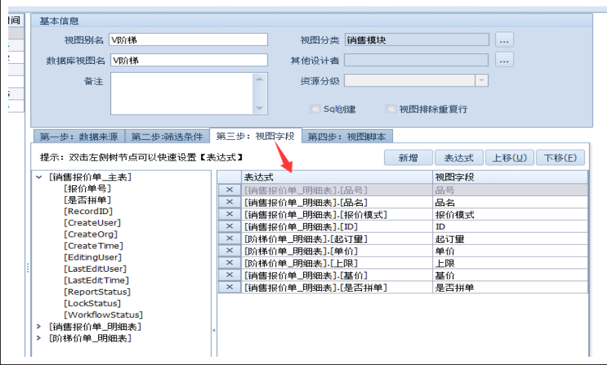 主表中,【ID】是销售报价单中的ID传过来,用于记录报价的单号,【报价模式】和【基价】字段和销售报价单中的意思一样,当报价单和阶梯价单发生不一致时,以阶梯价单的数据为准。