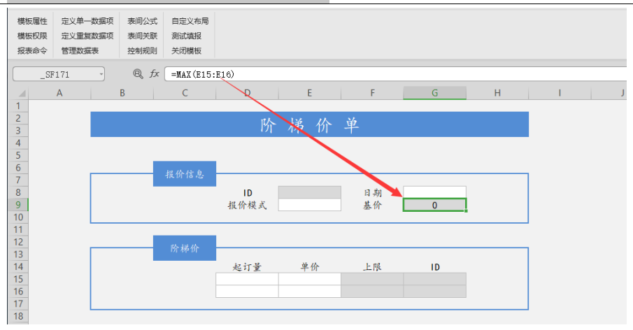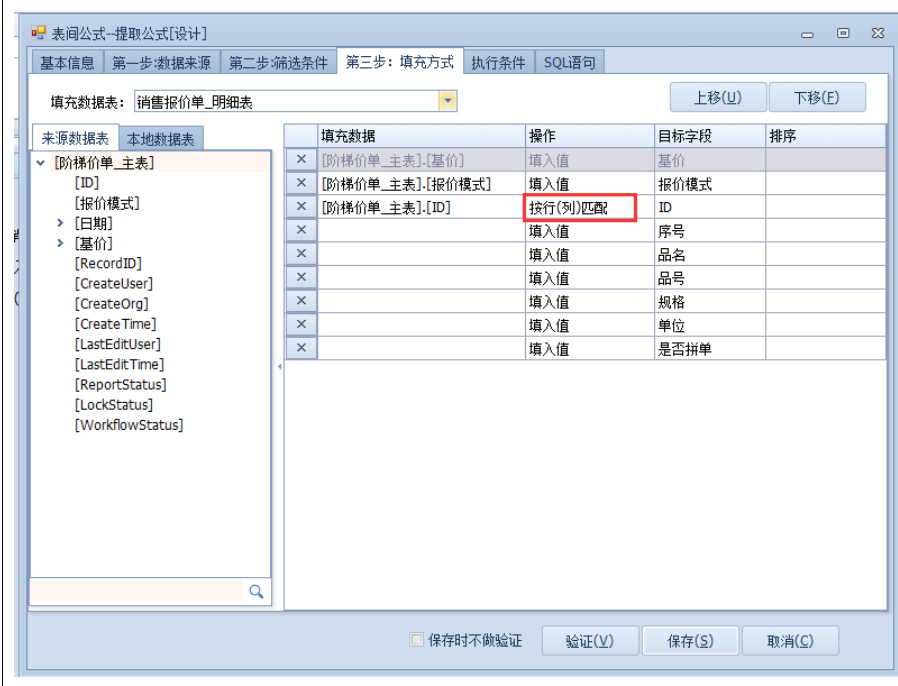 填充方式使用阶梯价单中的ID来按行列匹配,如果不按行列匹配的话,会自动向下增加,数据会错乱。将阶梯价中基价和报价模式填入,上文中求的报价单中的基价就是在这时提取过来。