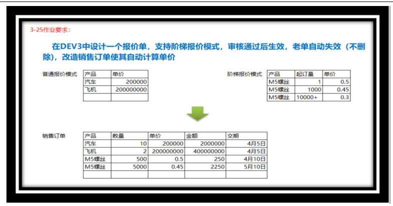 目标:实现销售报价单上按数量和按金额两种形式的阶梯报价,并且审核通过后生效,老单自动失效,在销售订单上计算阶梯单价。