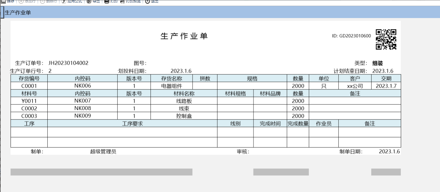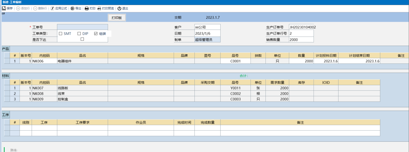 4.工单编制(制定工单,后续打印出来生产全程由工单跟踪)