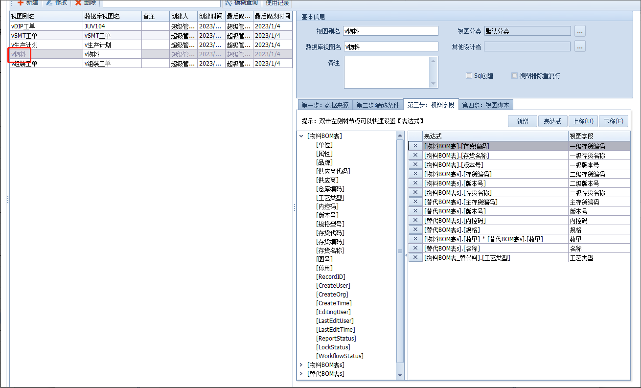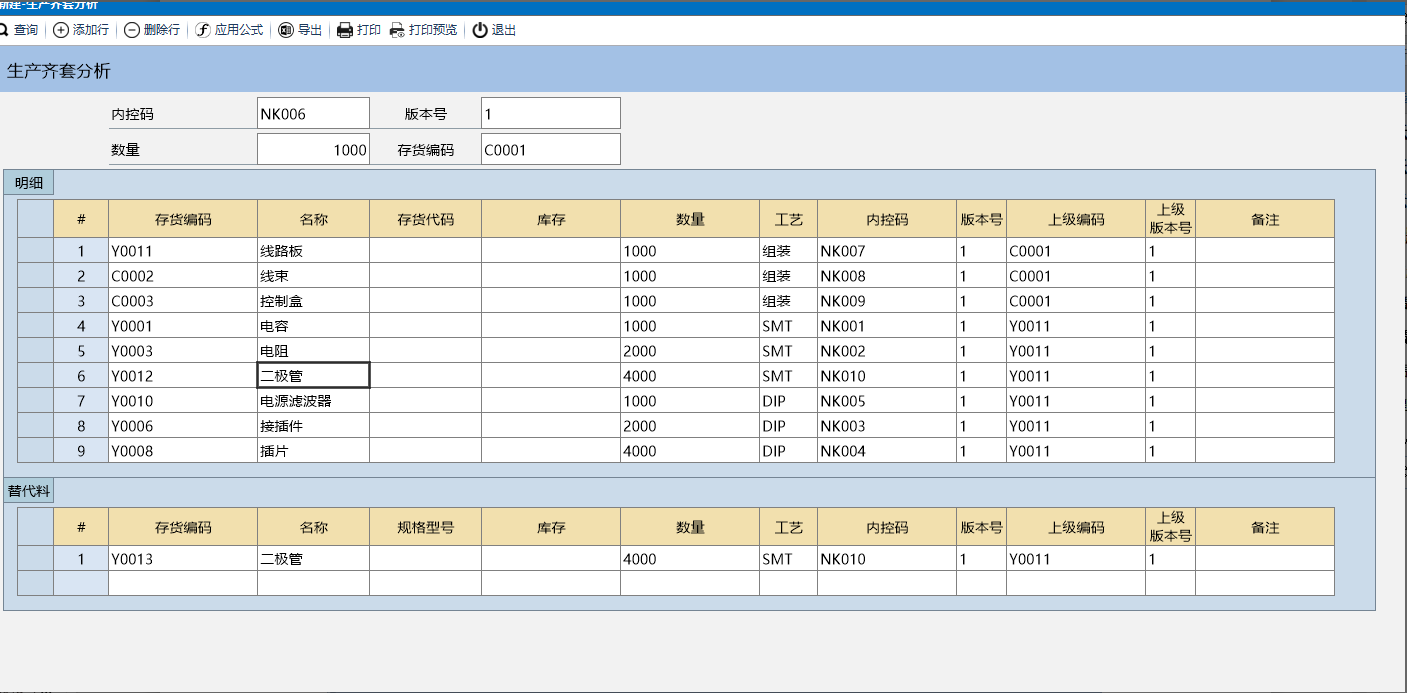 齐套分析建立报表命令(用于查看替代料情况,使用到上述的辅助字段)