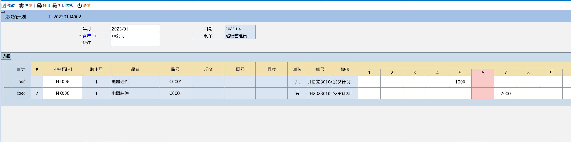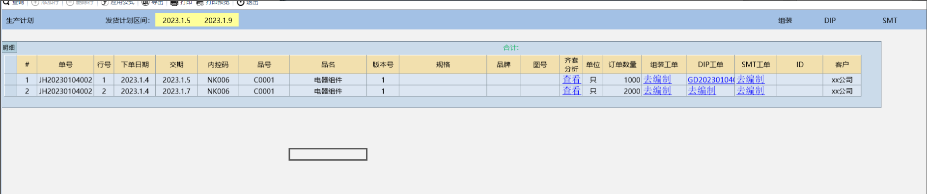 逻辑完成,效果如下,填写发货计划后,自动生成生产计划: