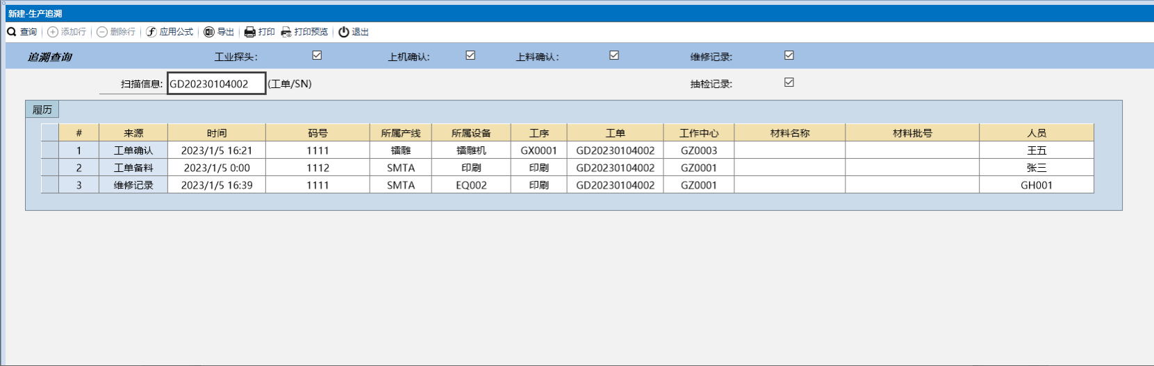 - 场景-前台表和自定义报表标识组合展示出入库情况