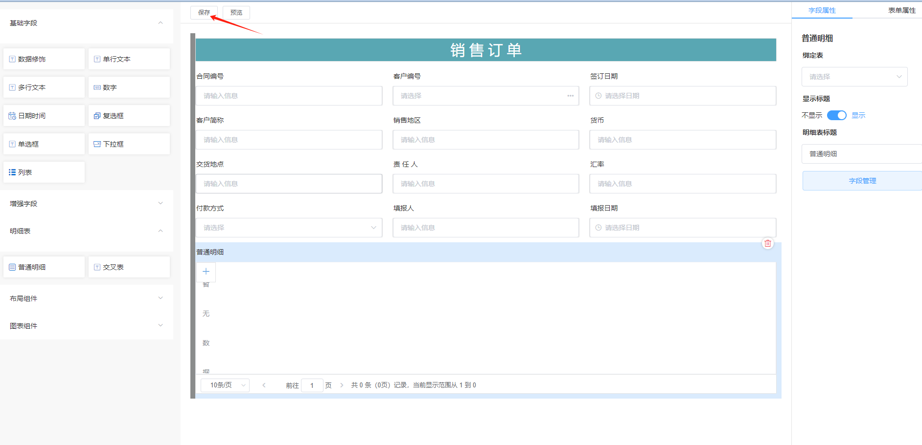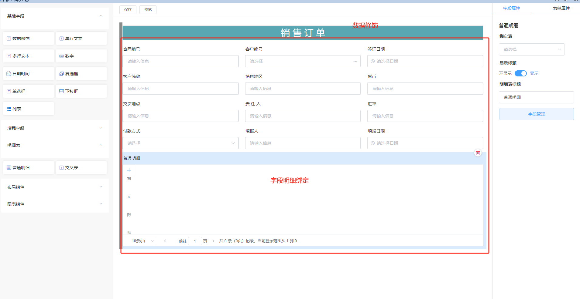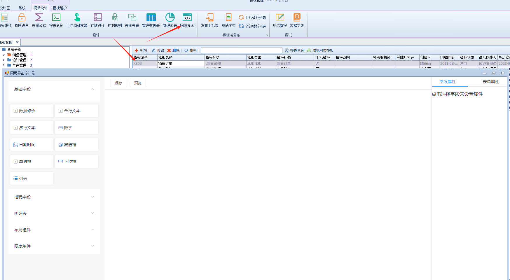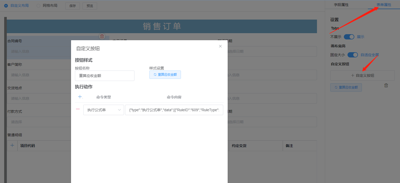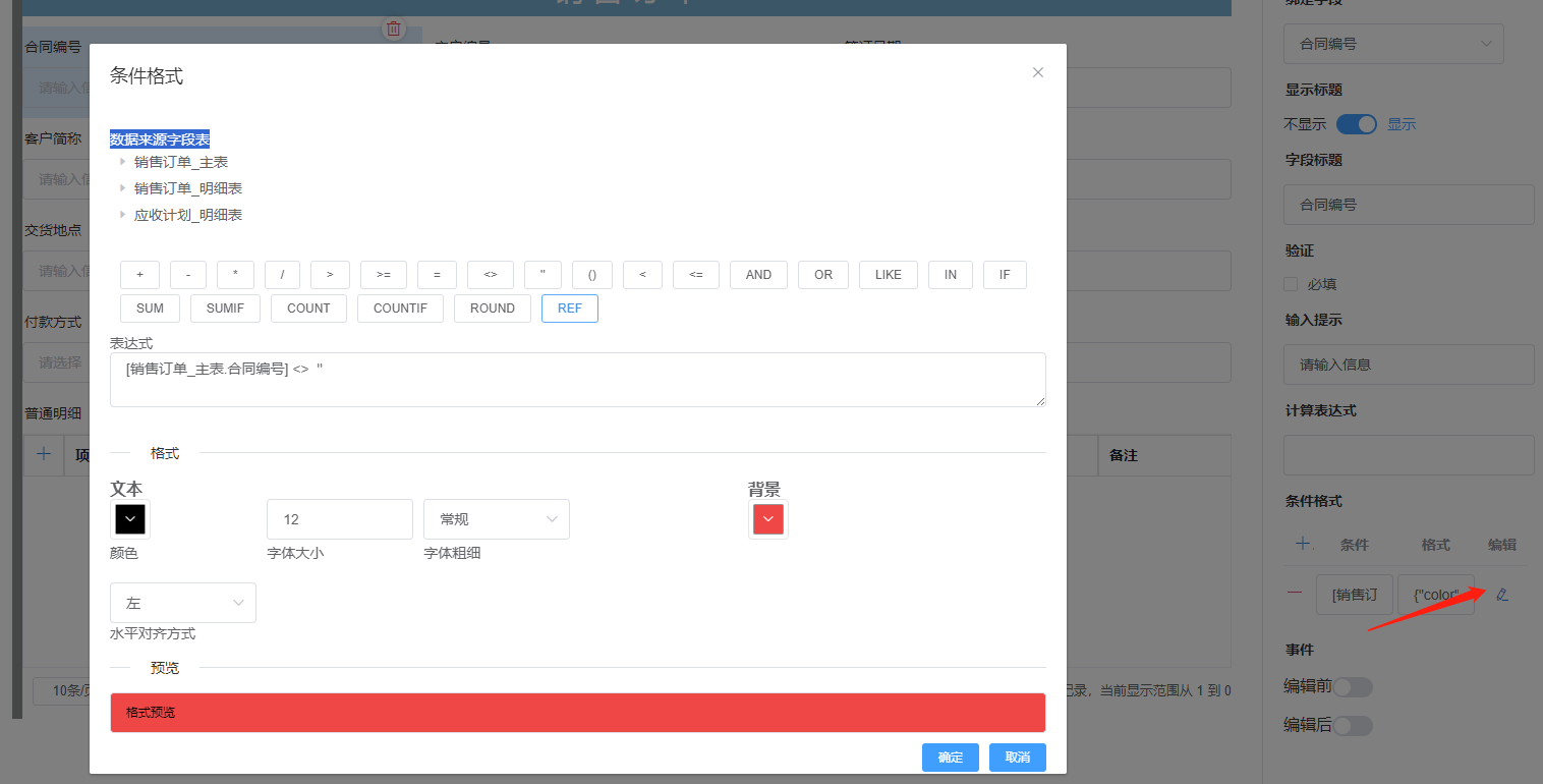 上一页 此处以销售订单为例,做网页设计演示1.选择设计模板,点击网页进入2.进入布局3.设计界面并绑定字段如下4.根据业务需求设置给相应字段设置条件格式,例:5.根据需求设置按钮6.保存设计,进入网页端即可填报查看 下一页作者:harry 创建时间:2023-08-22 16:33最后编辑:test 更新时间:2025-10-14 15:38