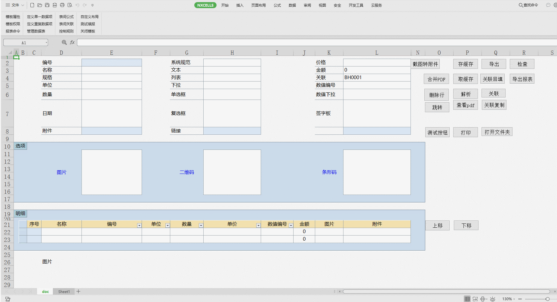 目录 搜索 展开 文档更新日志设计环境搭建基础环境搭建服务端安装服务端安装视频三端简介什么是模板、表单、字段?学习引导第一节-数据输入第二节-数据处理业务数据的输入方式数据业务逻辑完善第三节-数据展现第四节-以销售模块阶梯价为例学习测试小游戏作业练习1.模板及部门角色用户搭建2.字段属性及控制3.表间公式进阶练习仿做仿做-物品采购领用管理仿做-电商案例案例_W销售订单阶梯价拼单调价单采购订单自定义动态换算修正阶梯价自动采购订单物流模块物流基础进销存报表先进先出生产模块报工单车间看板工序进度看板无焦点扫码案例_S仿做-销售报价支持阶梯价和拼单阶梯价调价单销售订单仿做-采购核心自定义动态换算自定义阶梯修正价采购订单自动生成仿做-物流核心物流管理仿做-生产核心报工单工件实时进出工序进度看板案例_Y仿做-阶梯价拼单调价阶梯价拼单调价单仿做-采购模块仿做-自定义动态换算仿做-自定义阶梯修正价仿做-自动生成采购单仿做-物料管理物流基础进销存基于批次先进先出自动领料仿做-生产模块报工单存货看板整体进度看板实战练习学习引导2生产追溯案例基本信息建设批量标签打印生产模块工作表单追溯第一章 NxCells概述NxCells的开发初衷及价值NxCells是信息系统工具部署方法硬件及软件基本环境要求 用NxCells构建信息系统组织、角色、用户第二章 安装与卸载客户端安装客户端安装视频手机服务端安装移动端安装视频安装问题提示修改手机端欢迎界面卸载与升级DIY图标设计端详解手机端和web端合并第三章 服务器配置基本操作应用系统服务的启动与停止应用系统的停用与启用视频数据库备份备份的三种类型手动备份自动备份备份视频数据库恢复账套恢复视频新建账套(应用系统)创建应用系统视频业务系统配置文件与图片存储位置第四章 模板的搭建1.设计端登录2.创建模板创建模板视频2.1模板属性控制详解基础属性扩展属性保护控制样式及编辑控制其他控制显示控制表单显示控制菜单项隐藏控制默认展示时间跨度徽章脚本3.构建表样4.定义字段建表方式详解单一数据项重复数据项交叉表交叉表的定义视频管理数据表详解管理数据表设置表设置字段设置数据分类自动分组自定义数据类型自定义后台字段名系统保留字段设置模板状态第五章 设置模板权限组织机构、角色以及用户权限的搭建设置组织机构设置角色角色权限角色-表单填报权限角色-表单查阅权限角色-表单修改权限角色-表单删除权限协同填报设置用户组织机构、角色、用户的建立针对某一个账号进行设置管理用户的权限工作交接权限效果查看-请看第九章第六章 完善模板-模板赋业务逻辑字段输入控制-常用列表方式列表方式构建与绑定视频系统变量系统变量的绑定视频下拉方式下拉方式视频自动编号自动编号视频字段输入控制-其他复选框复选框视频树形结构案例1二维码模型二维码视频定位ssl申请地图定位ak切换数据处理-表间公式提取公式按行列匹配视频提取公式-预编译回写公式视频回写公式-预编译新建公式视频数据关联-表间关联表间关联视频表单控制-控制规则控制规则视频进阶操作- 报表命令建立报表命令报表命令详解基础命令提示信息提示信息视频询问询问视频打开文件夹对话框检查文件是否存在调用系统命令调用系统命令视频调用内部接口事件调用内部接口事件视频调用报表命令事件调用webapi修改填报人修改填报人视频修改填报部门等待等待-报表命令视频进度提示进度提示视频设置窗口标题设置窗口标题视频继续循环继续循环视频终止循环终止循环视频结束命令工具栏命令触发工具栏按钮设置报表按钮状态按钮状态视频BarTender打印打印工作表Excel打印添加图片上传附件全屏显示全屏展示视频关闭客户端刷新工作台区域Excel计算选项设置excel计算选项视频字段区域操作选择日期段批量赋值批量赋值视频赋值赋值视频选择区域赋值赋值加密赋值加密视频赋值加密AES交叉区取值交叉区取值视频交叉区格式刷新Excel公式计算Excel公式计算视频赋公式赋公式视频添加批注添加批注视频生成二维码生成二维码视频批量生成二维码报表转存附件打开图片和附件发送邮件报表命令发送邮件通过新建公式发送邮件流程中绑定邮件发送接收邮件另存附件和图片另存附件与图片链接转图片链接转附件图片转附件附件转图片图片展示示例计算位置间的距离打开列表选择执行数据规范交叉区单元格格式设置获取选择区域地址报表区域截图存附件设计图片标注视频打开超链接执行图片标注视频发布EDM文件夹发布EDM文件打开EDM文件打开文档工作区表区域操作单元格排序分组统计清除分组统计添加行删除行按条件删除行清除筛选自动筛选明显表筛选显示设置行列显示状态设置行列状态视频案例获取行高列宽获取行高列宽视频设置行高列宽设置行高列宽视频案例1固定表区域尺寸固定表区域尺寸视频隐藏明细表记录隐藏明细表记录视频设置工作表显示状态工作表状态复制单元格区域复制单元格区域视频复制新增明细行复制新增明细行视频清空单元格区域清空单元格区域视频相同值自动合并相同值自动合并视频相同值解除合并相同值解除合并视频复制新增工作表复制新增工作表视频删除工作表删除工作