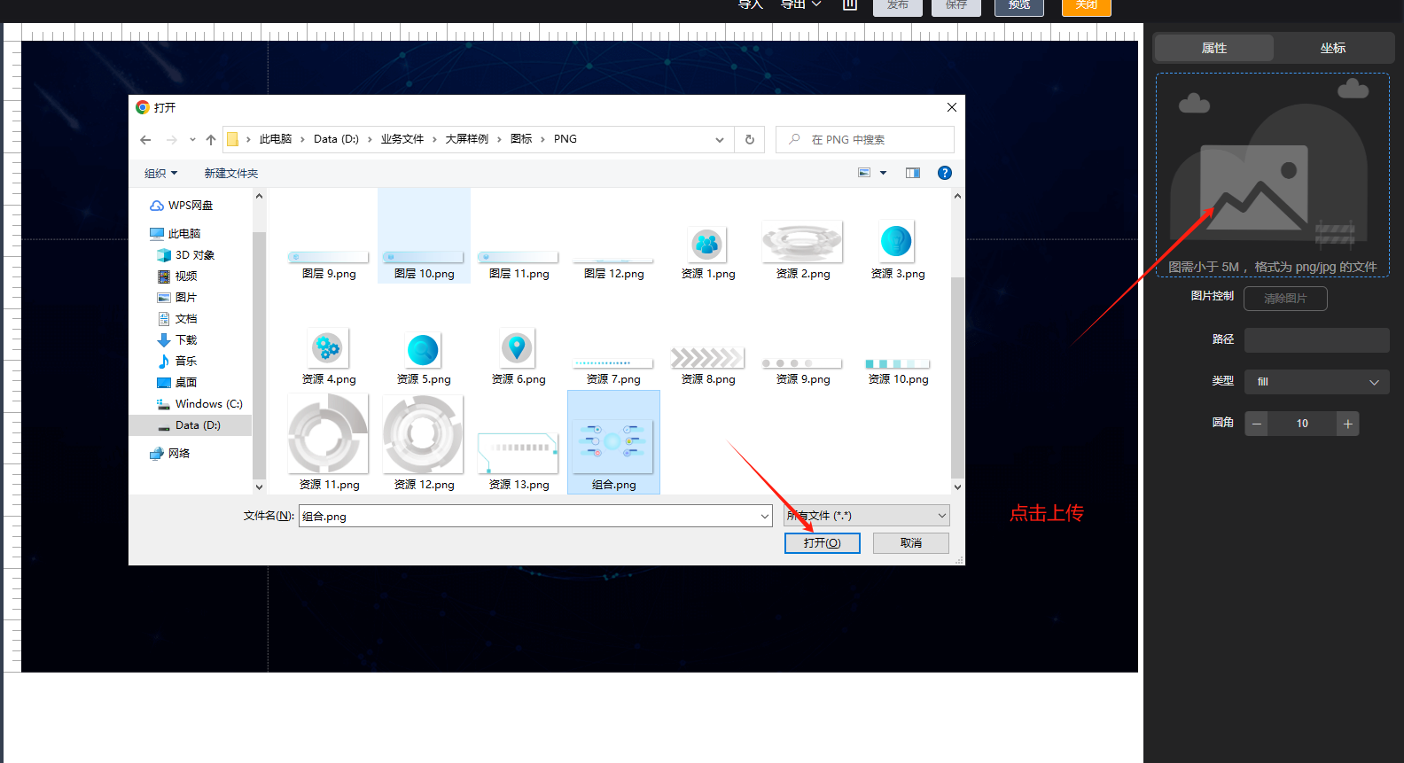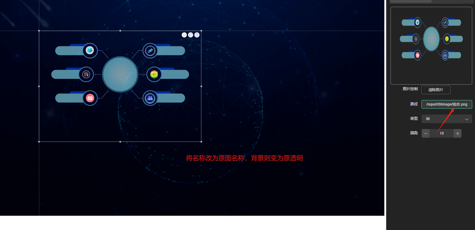 注意:图片上传是无背景图片,但是上传经过压缩后会带黑色背景,这里可通过将原图片图片复制到上传图片的路径,然后将图片名称改为原图的名称即可,此功能在持续跟进优化中,目前暂时采用此处理方法: